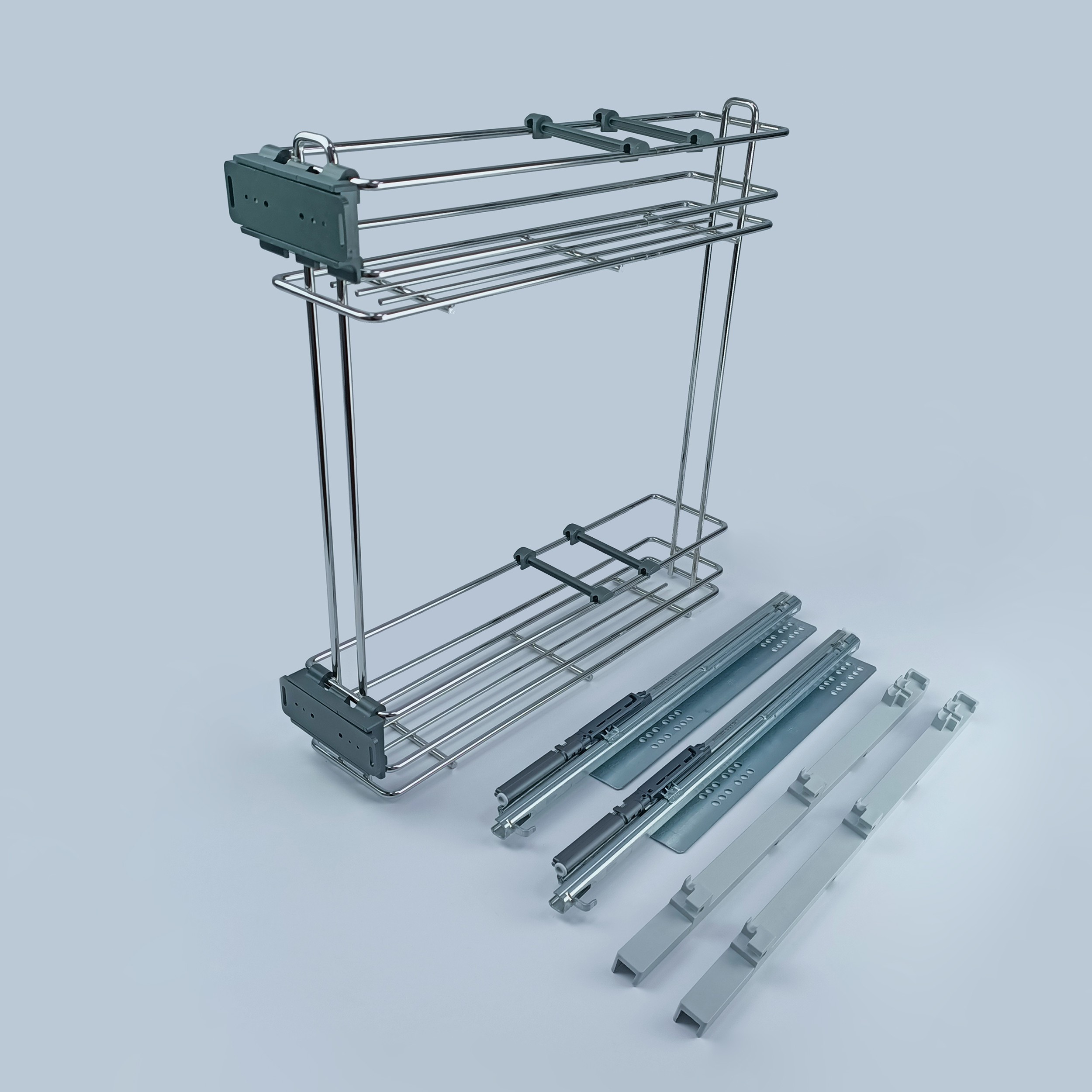 Являє собою дворівневий кошик, який за допомогою тандем направляючих кріпиться до бічної стінки меблів. Карго дуже зручне для зберігання кухонного приладдя які не поміщаються в звичайний ящик.