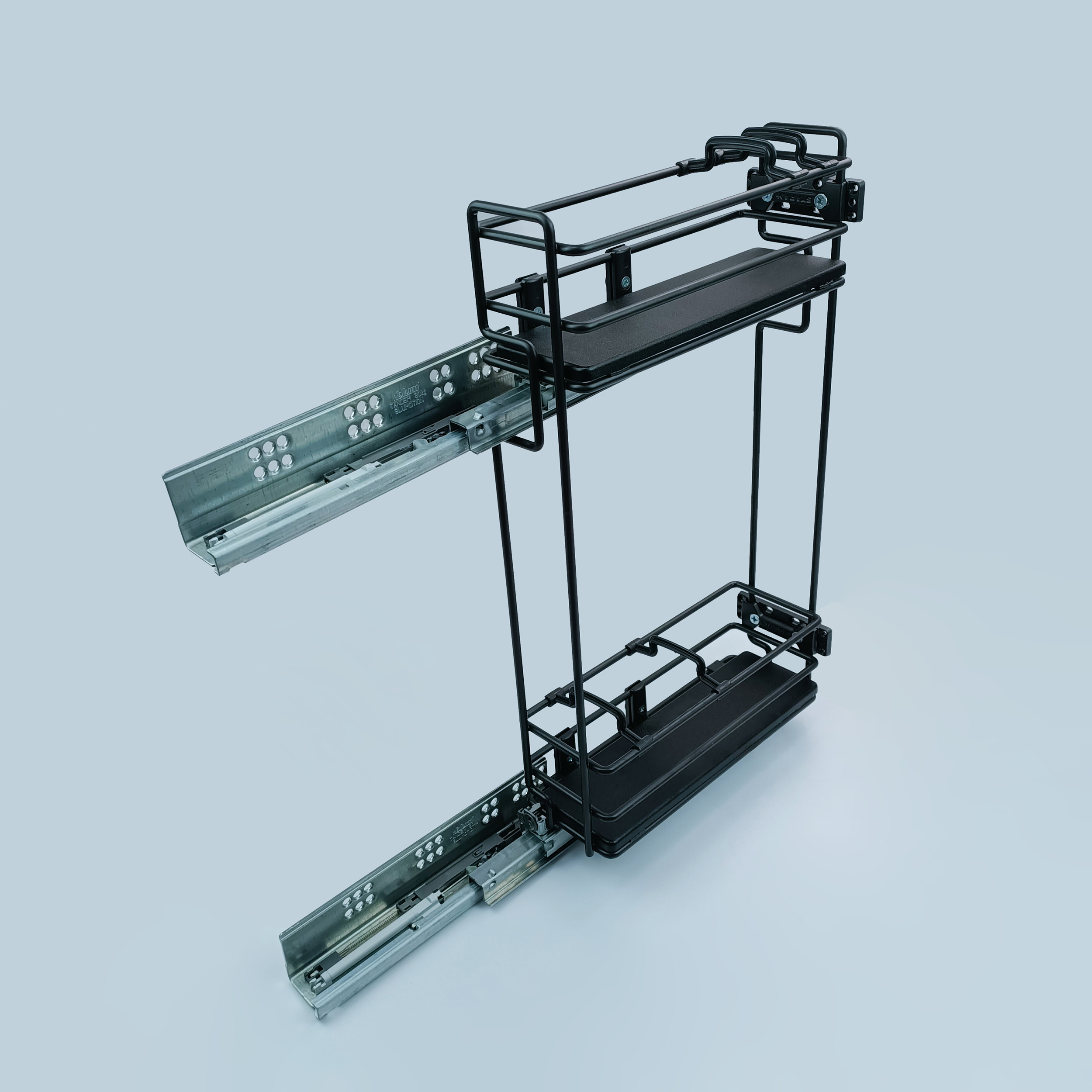 Являє собою дворівневу корзину, яка за допомогою тандем Blum напрямних кріпиться до бічної стінки меблів. Карго дуже зручне для зберігання кухонного приладдя які не поміщаються в звичайний ящик.
