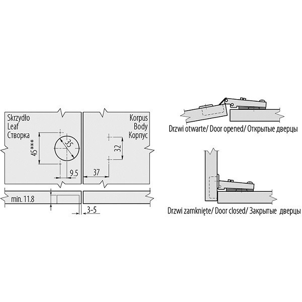 | Варіант відкривання/закривання: | Без доводчика |