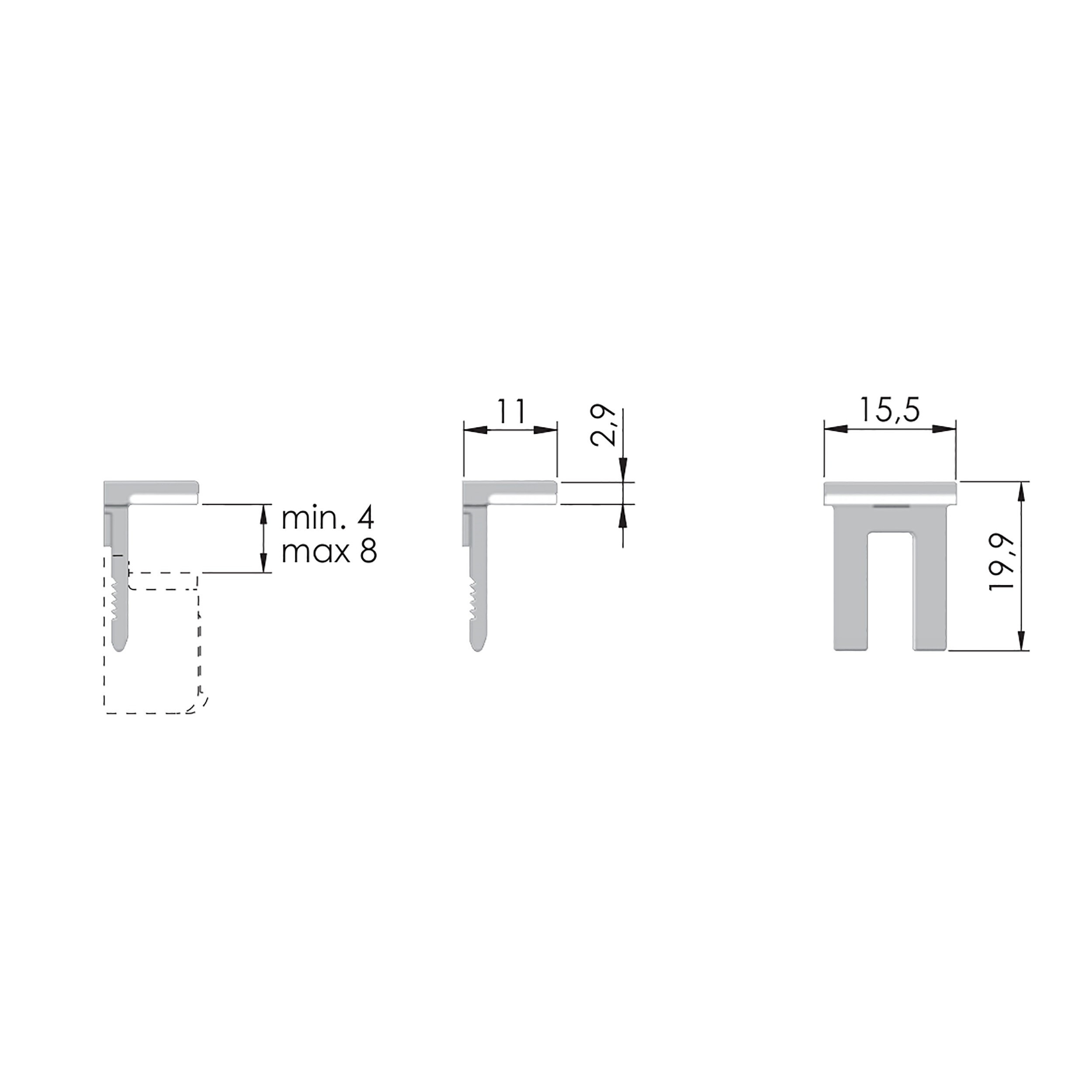 Є м'які прогумовані прокладки, які забезпечують максимальну безпеку скляній полиці. Можливість установки полиці товщиною 9 мм без використання силіконової прокладки. Варіант для саморізів можна використовувати для полиць в нішах.