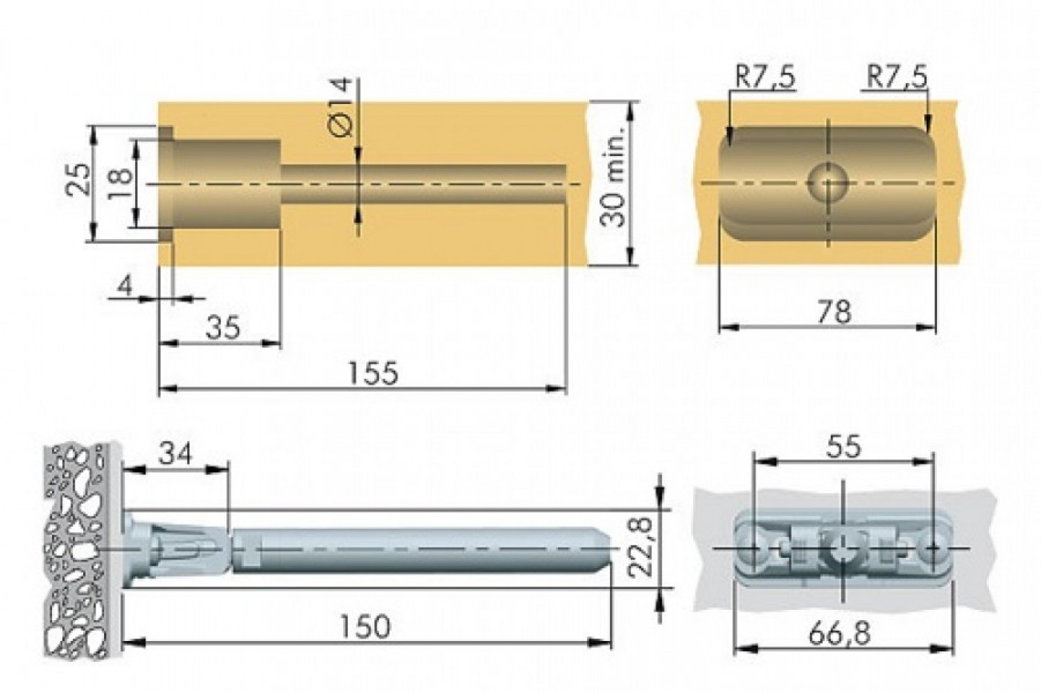 Для кріплення полиць з ДСП товщиною від 30 мм до 40 мм, до стіни з бетону, дерева або гіпсокартону. Максимальне навантаження на один полицетримач - 15 кг. Мінімальна глибина полиці - 160 мм, максимальна - 300 мм.