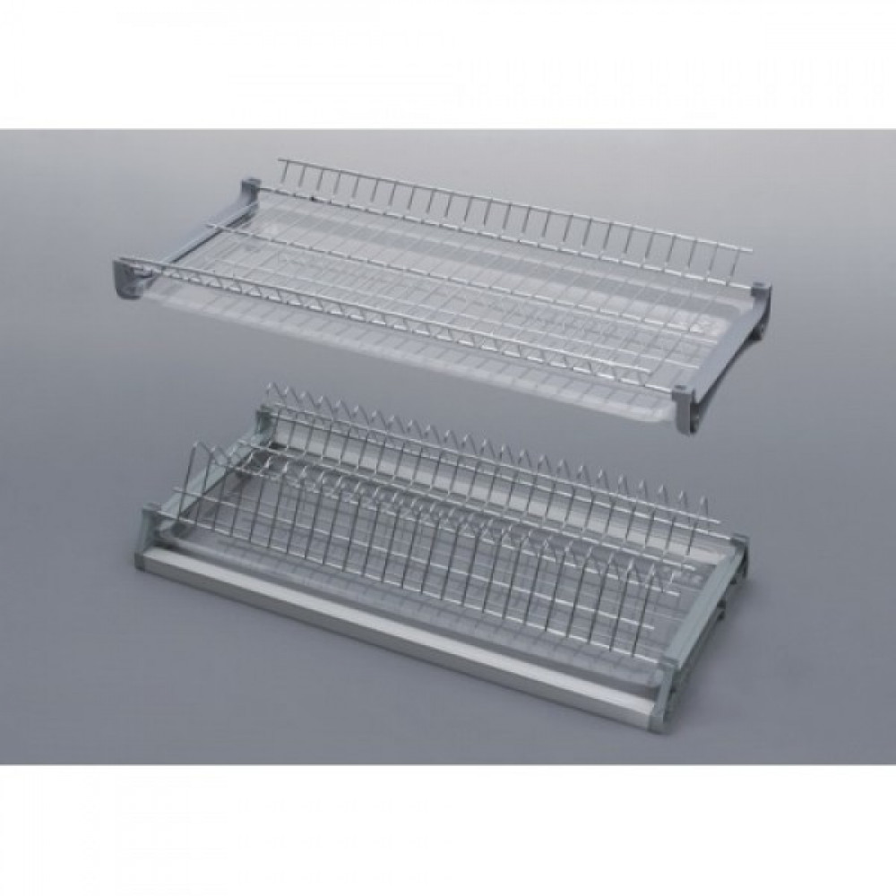Комплект складається з сушки під чашки, сушки для тарілок, 2 прозорих піддонів, якісного кріплення, алюмінієвого профілю - один задній з пазом для ДВП і один передній.Наявність рами дозволяє не монтувати дно ящика для поліпшення вентиляції в сушці.