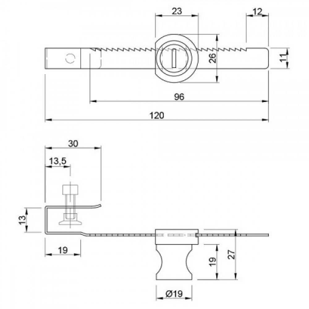 Область застосування: для сердечників циліндра, які вставляються попереду. Матеріал: корпус - цинкове лиття, зубчаста рейка - нержавіюча сталь. Монтаж: зубчастої рейки - шляхом затиску, циліндра - шляхом насадження на зубчасту рейку.
