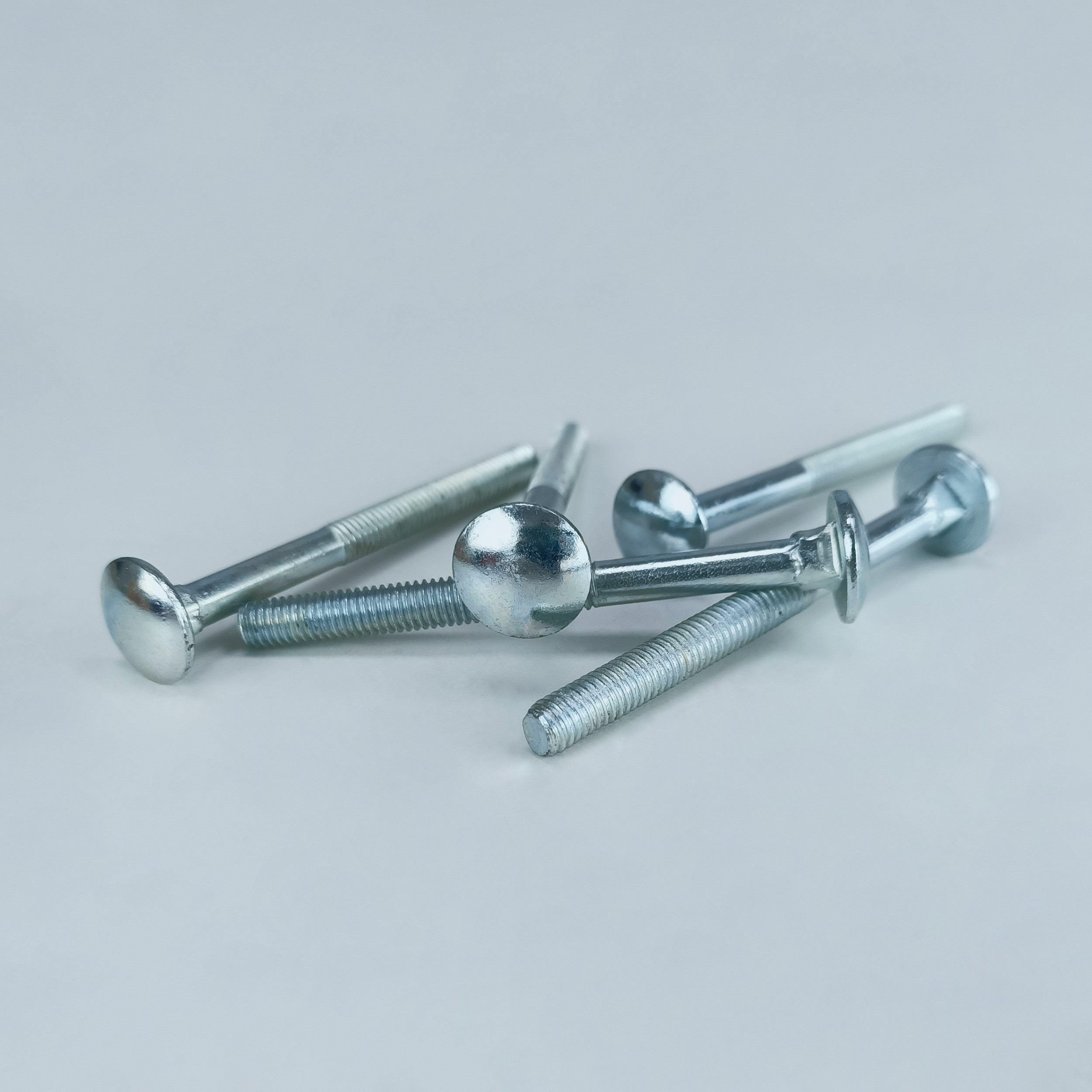 Болт мебельный состоит из полукруглой, без насечек и шлицов, головки и стального стержня, 2/3 части которого занимает резьба. Квадратный подголовок детали мешает прокручиванию метиза в посадочном месте, и делает крепеж прочнее.