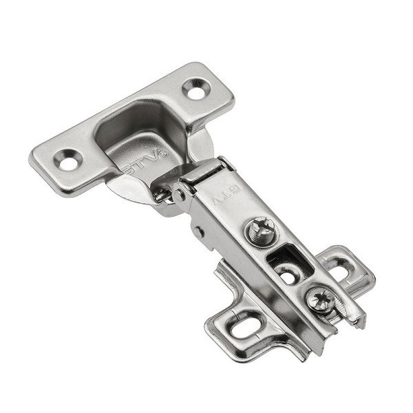 При использовании этой петли петельная часть створки в закрытом состоянии почти полностью накладывается на торец соседней стенки корпуса мебели.