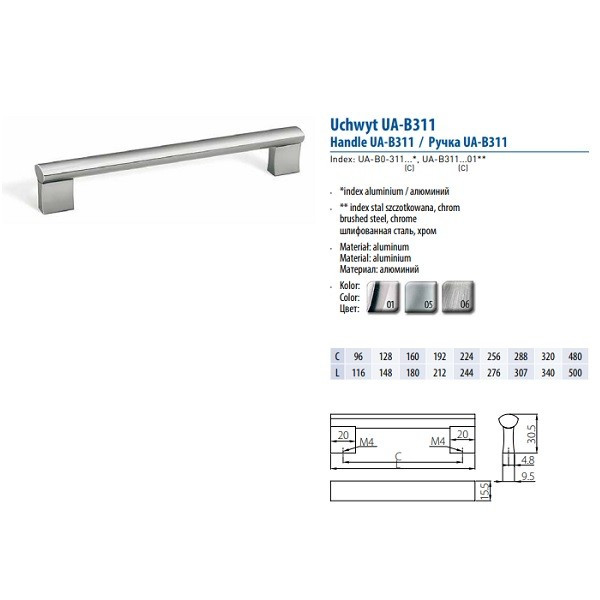 Ручка GTV BO-311 192 алюминий