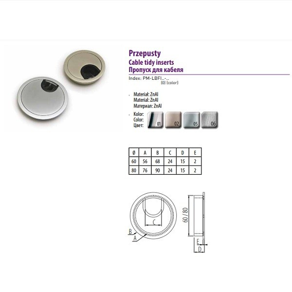 Имеет широкую прорезь овальной формы. Внутри размещён уплотнитель щеточного типа. Врезается в крышку-столешницу. Пропущенный сквозь неё электрокабель прочно фиксируется в определенном положении.